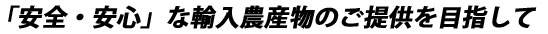 | いま、最も「安全・安心」が求められているもの、それは命の源となる食べ物の分野だと思います。 わが社におきましても、海外で信頼のおけるパートナーと提携し、安全で且つ、消費者の皆様に安心してご購入していただける輸入農産物、食品の提供に努力を重ねております。 |