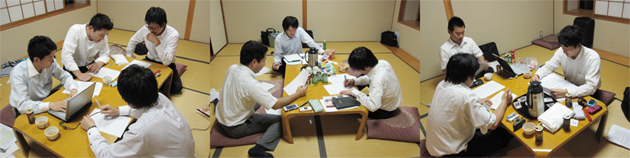 ケーススタディでは各班夜遅くまで課題に取り組んだ |