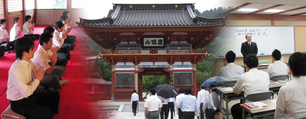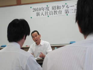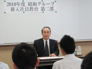 2010年7月1日(木)〜2日(金)までの間、2010年度昭和グループにおける新入社員教育第二部を勝尾寺にて行いました。今回は、講師にOBの曽根源蔵氏をお迎えし、昭和スピリットを若い世代に伝えて頂きました。また三原取締役の講話では、ビジネスマンは如何にあるべきかを解りやすくご指導頂きました。