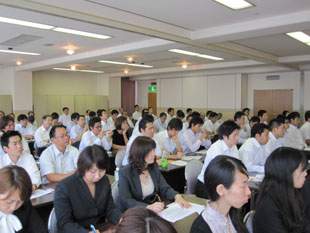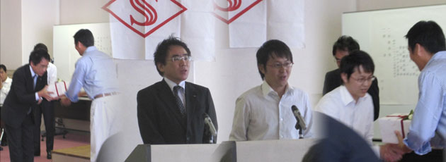 社長から2011年度の経営方針の発表、その後各部店の代表より昨年度の成果及び、今年度の抱負、方針を発表し、我が社の更なる発展を全社員で誓った。