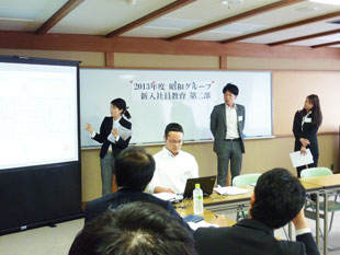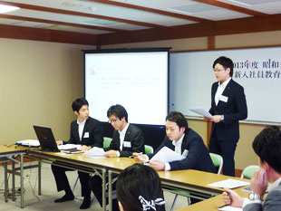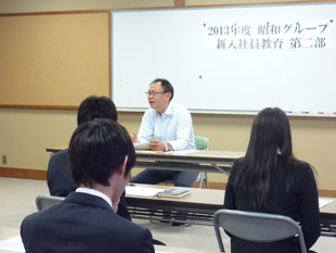 2013年5月23日(木)〜24日(金)、2013年度昭和グループの新入社員教育第二部を勝尾寺にて開催しました。今年も、室津伸一氏をお迎えしたOB講話から始まり、阿知原取締役の役員講話と、大先輩より、様々なご指導を頂きました。又、「営業折衝力強化のロールプレイング」では実際に即した研修、「ケーススタディによるグループワーク」ではチームにおける仕事の進め方を学ぶとともに、社員間の結束力を高めることができました。