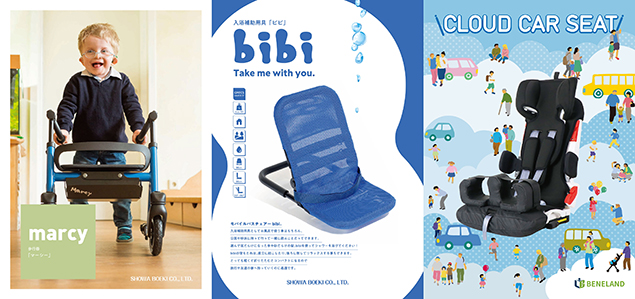この度ヘルスケア分野にて歩行器「marcy:マーシー」、入浴補助用具「bibi:ビビ」、車載用座位保持装置「CLOUD CAR SEAT:クラウドカーシート」を発売致します。