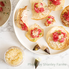 魚介類のカルパッチョや生牡蠣などに適量を乗せたり、脂の多い肉料理の付け合わせ等に利用されています。